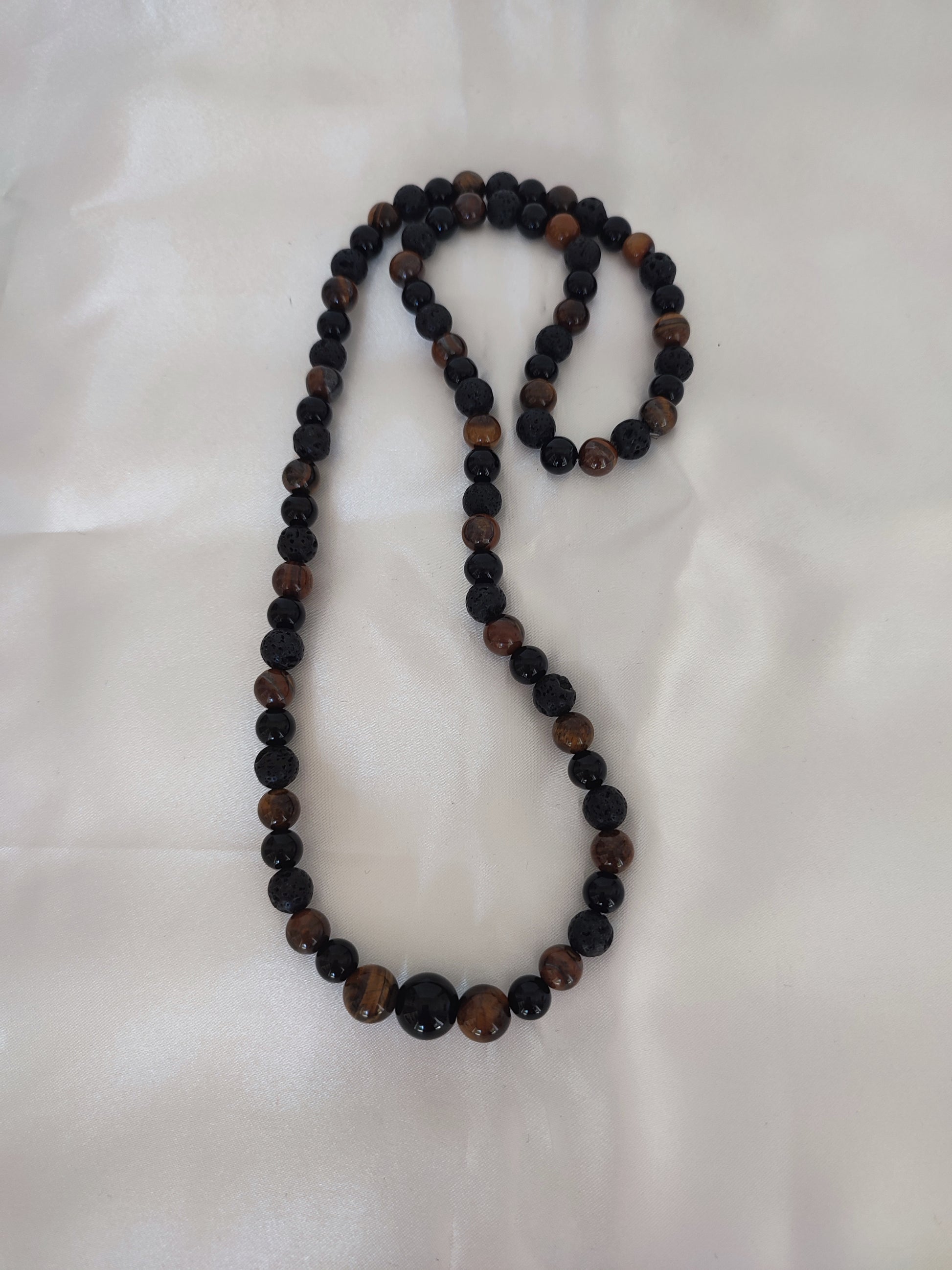Colar na pedra Olho de tigre, pedra vulcânica e ónix