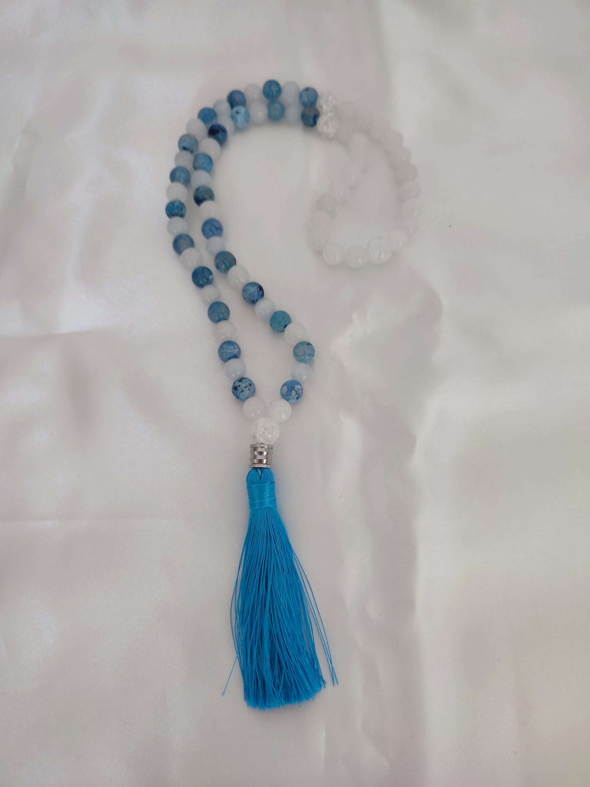 Japamala na pedra Ágata Veia de Dragão e Quartzo Branco