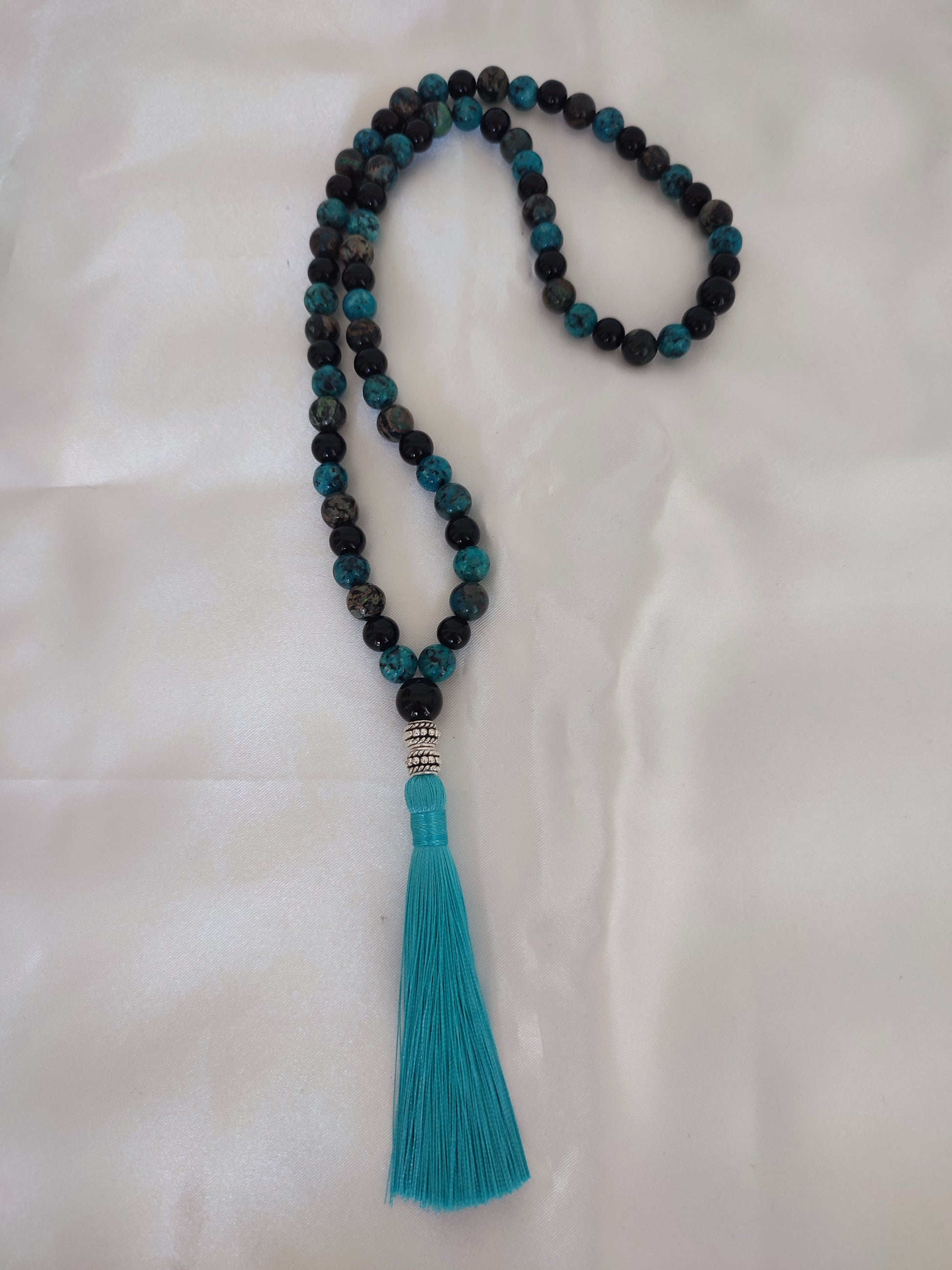 Japamala na pedra Jaspe Kambaba azul e Ónix