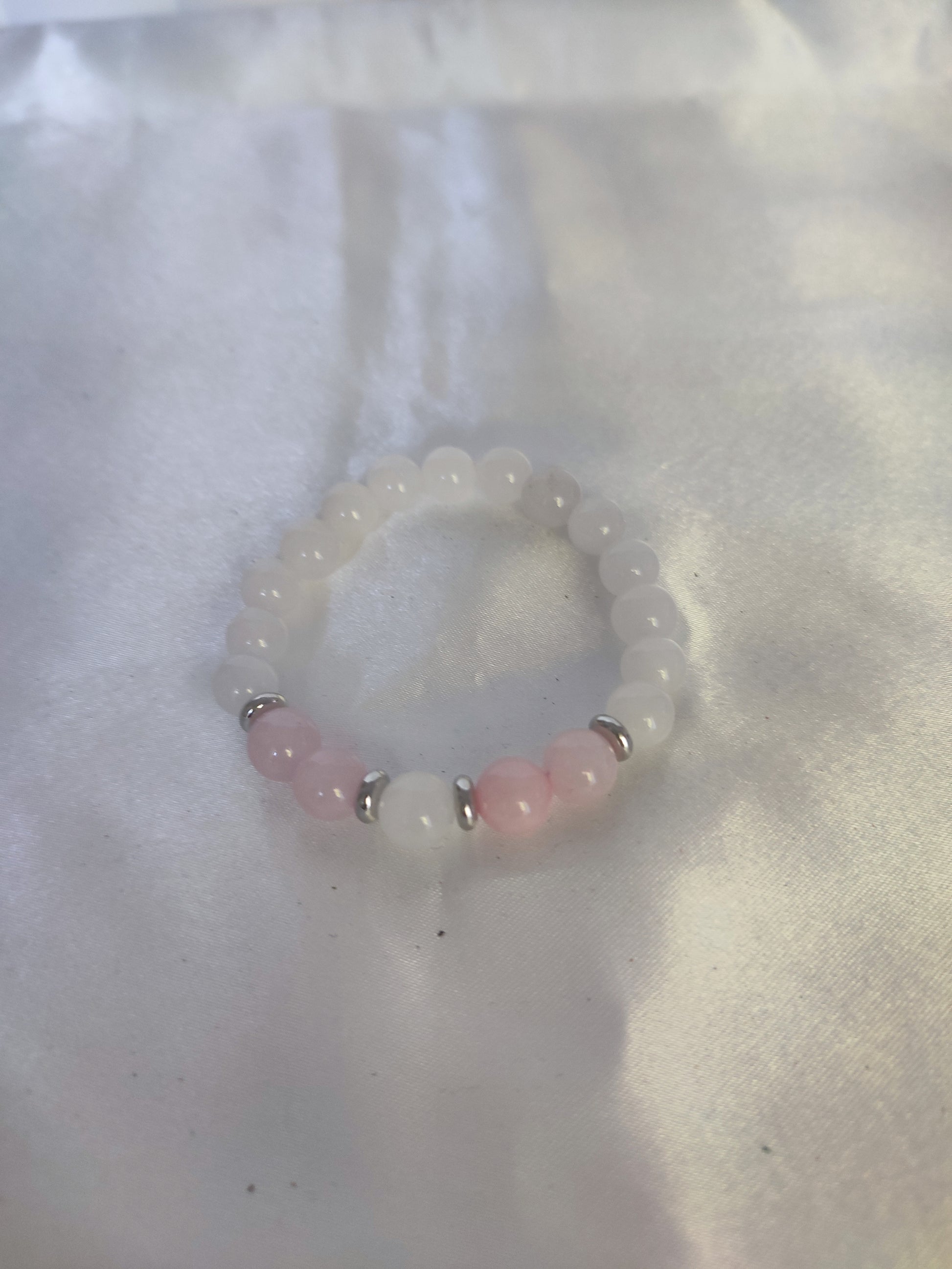 Adquira já esta pulseira e deixe sua criança brilhar com a beleza e a energia amorosa do quartzo branco e rosa.