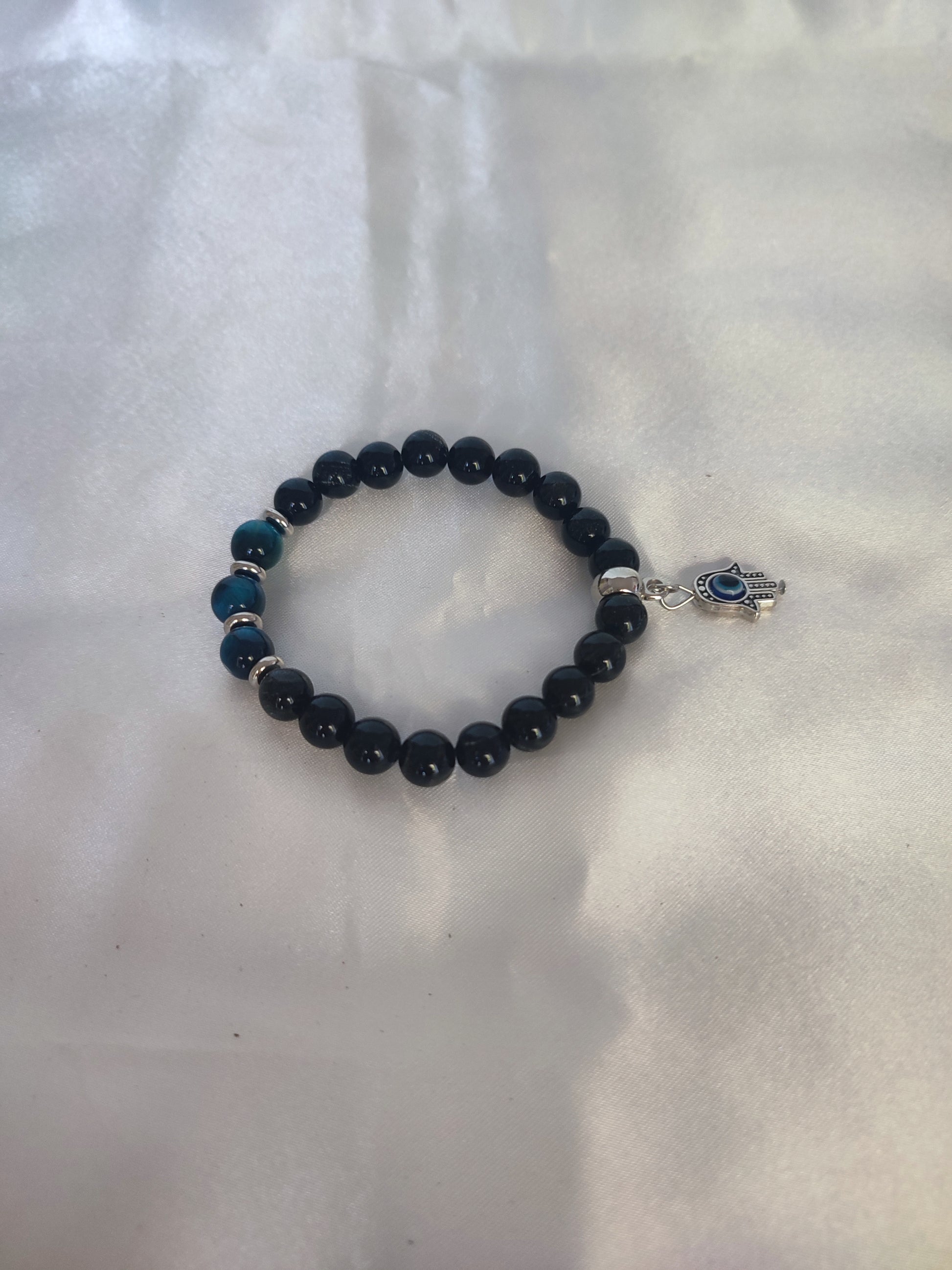 Pulseira de Defesa contra Inveja: Turmalina Negra e Olho de Tigre Azul