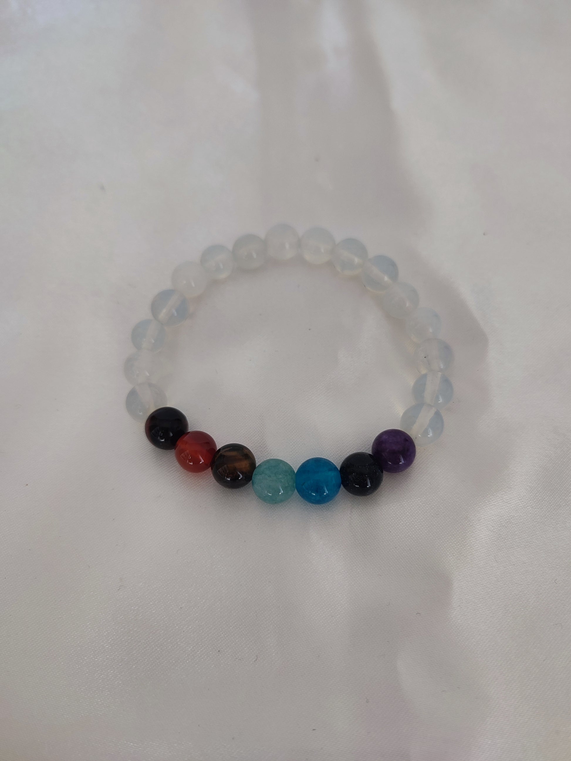 Cada conta representa um chakra, ajudando a alinhar e harmonizar as energias do corpo enquanto a pedra da lua contribui com uma sensação de paz e bem-estar interior.